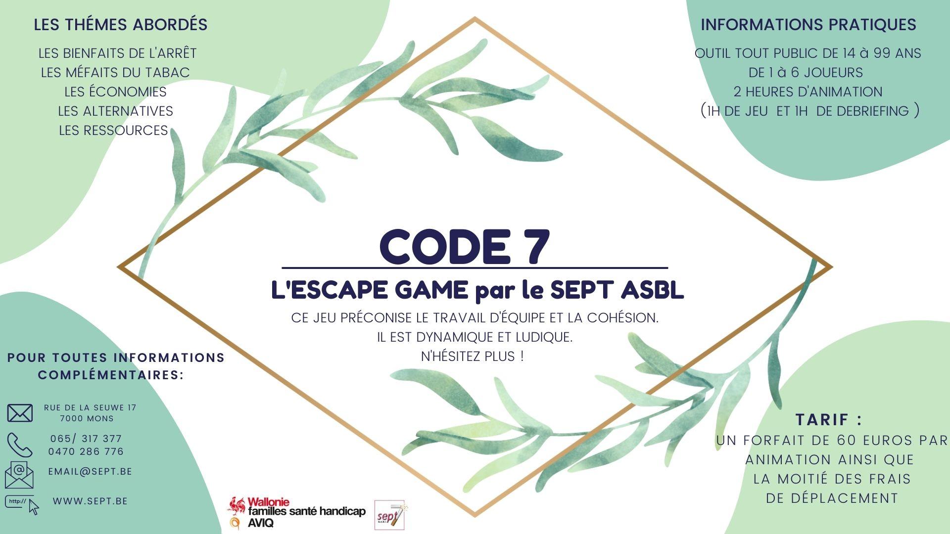 L’asbl SEPT vous présente son nouvel outil : L’escape game. Cet outil va permettre d’informer les participants de façon ludique sur le...